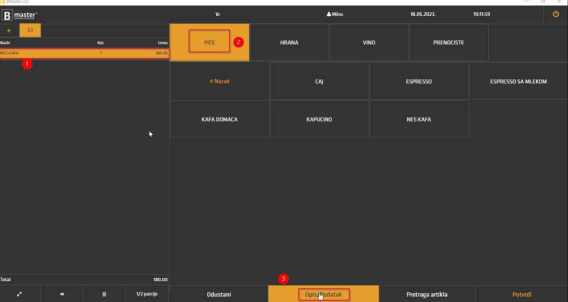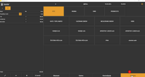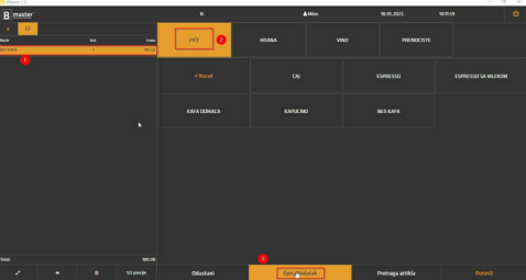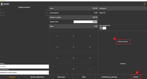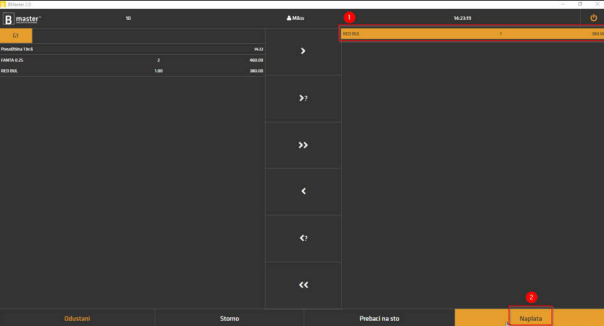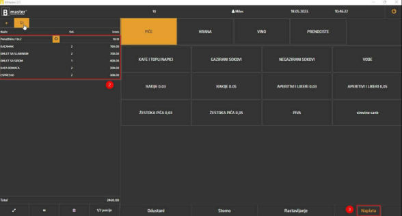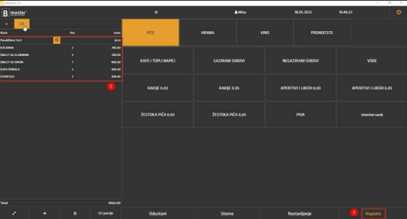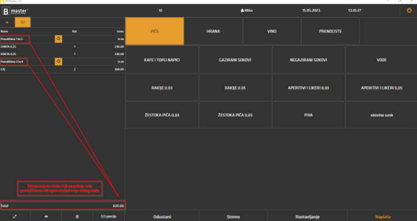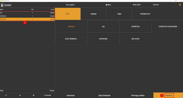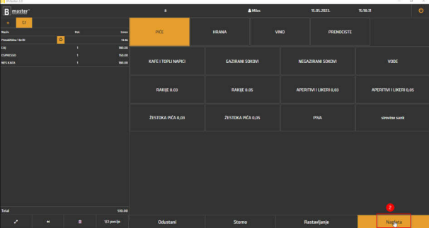 2) Nakon provere porudžbine/stola kliknite na NAPLATA