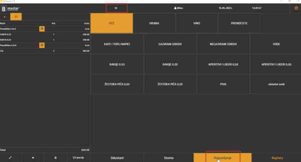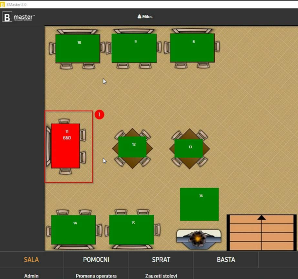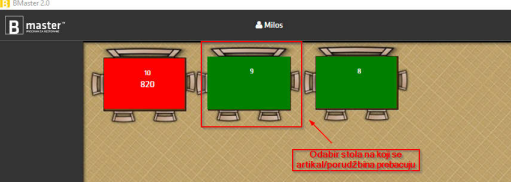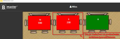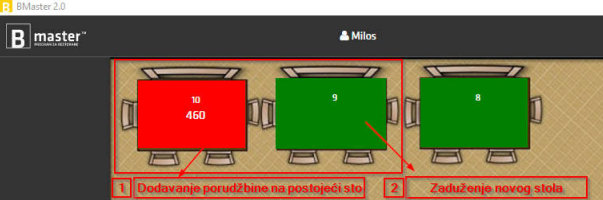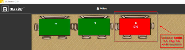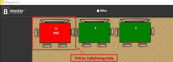 Za zaduživanje stola, neophodno je kliknuti na određeni sto: