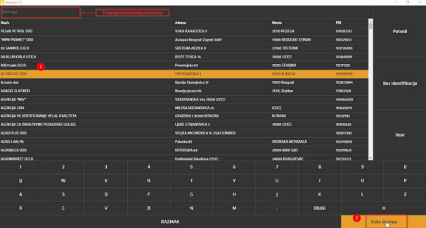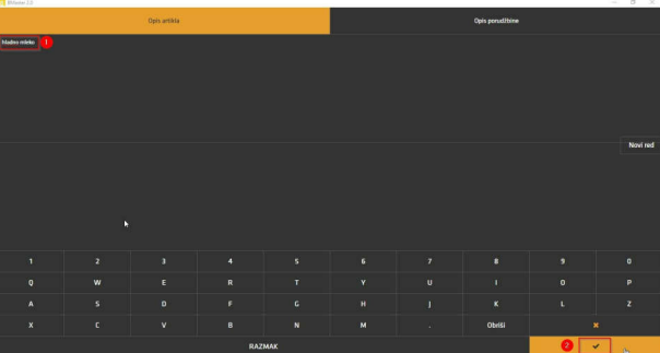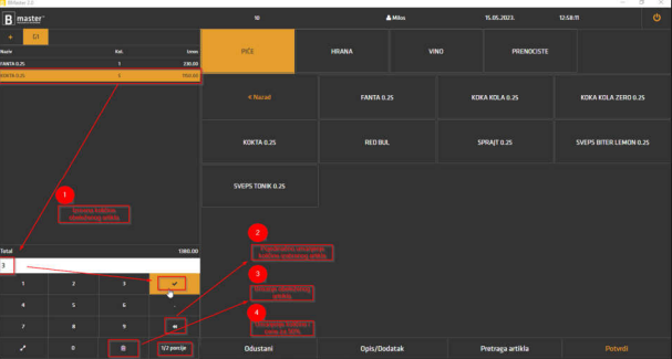 2) Korišćenjem numeričke tastature, odnosno unosom količine za dati artikal. Na ovaj način,