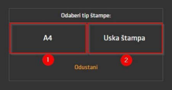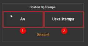 Klikom na polje vrši se odabir tipa štampe, izveštaj se automatski generiše i pušta na štampu.
