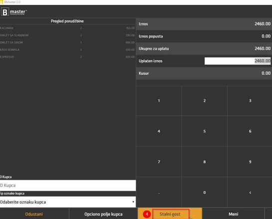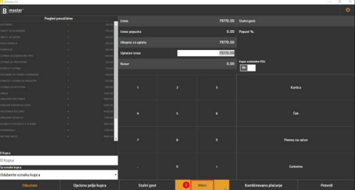 Opcija Meni koristi se u slučajevima kada želimo da izvršimo naplatu po gostu, po tačno definisanom