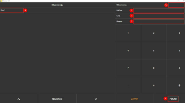 6) Polje za unos KOLIČINA, odnosno broj menija po gostu