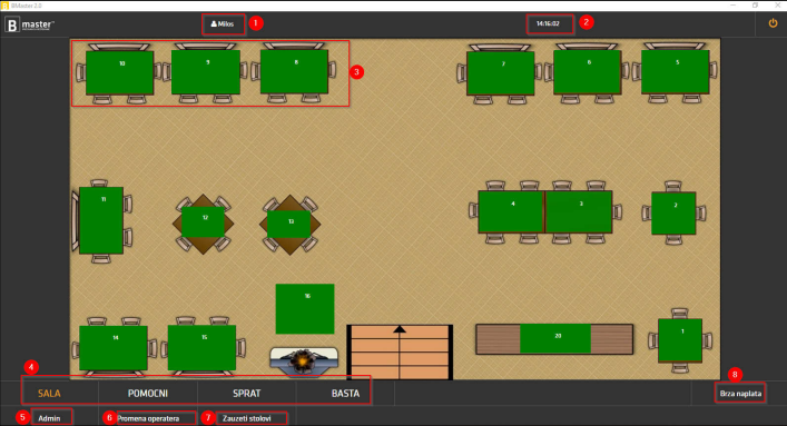 2.1.1. Detalji i opis funkcionalnosti osnovnog ekrana (sa stolovima)
