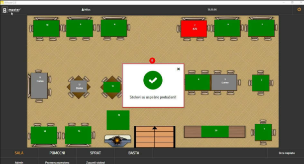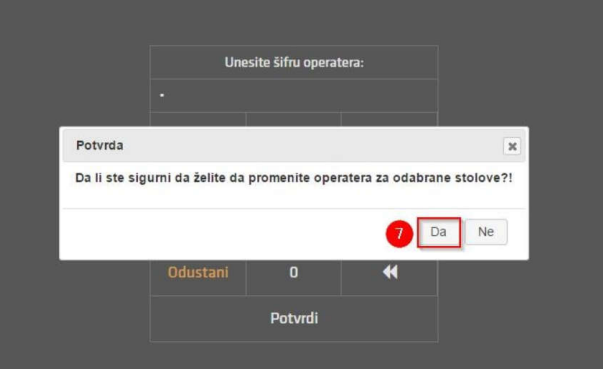 6) Klikom na dugme promena operatera, program nudi pregled zauzetih stolova od strane trenutnog