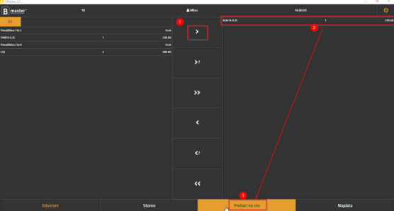 1) Izaberite sto za koji želite da izvršite naplatu korišćenjem opcije meni