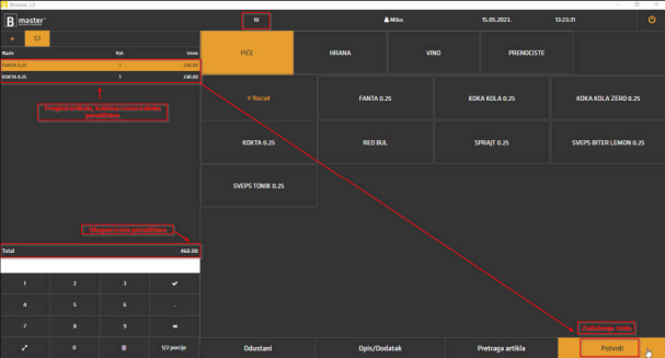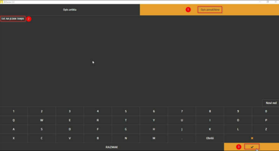 U okviru modula Master kasa, za svaki artikal i porudžbinu, moguće je dodati opis, za sam artikal ili za celokupnu turu/porudžbinu.