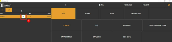 1) Izmena postojeće količine, klikom na numeričku tastaturu, unosom željene količine i potvrdom