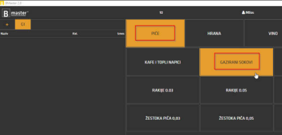 Nova porudžbina se dodaje otvaranjem stola, selekcijom artikala koji se dodaju na novu pordžbinu, koji su automatski vidljivi kroz pregled zaduženja stola kako je prikazano na slici niže. Isti princip se koristi i za postojeće kao i nove stolove.